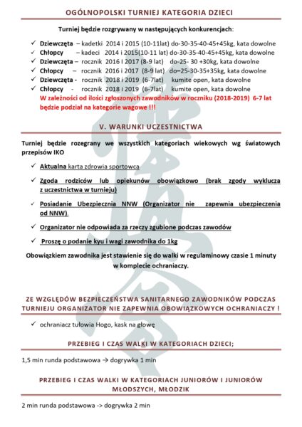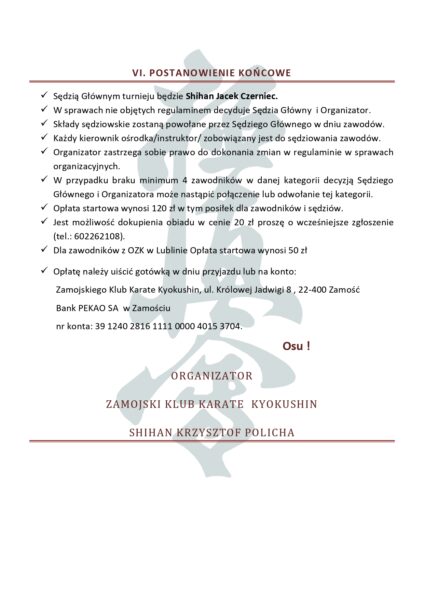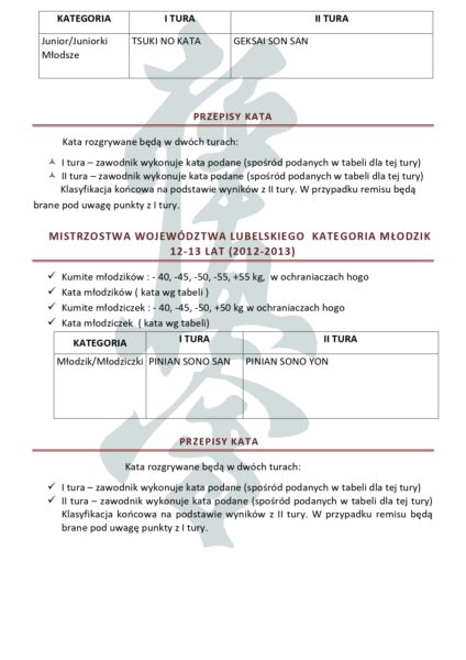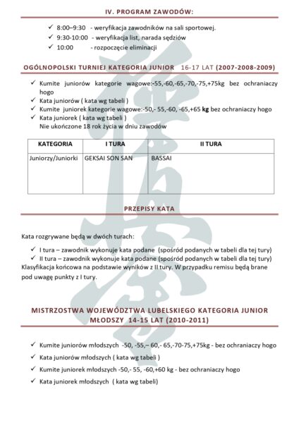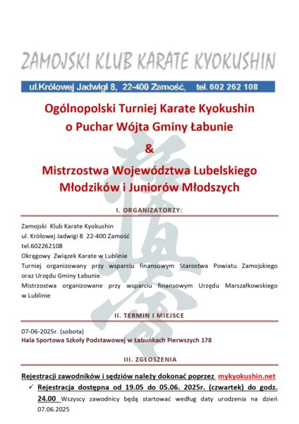 Mistrzostwa Województwa Lubelskiego Młodzików i Juniorów Młodszych Karate Kyokushin – Łabuńki 07.06.2025 – komunikat organizacyjny
